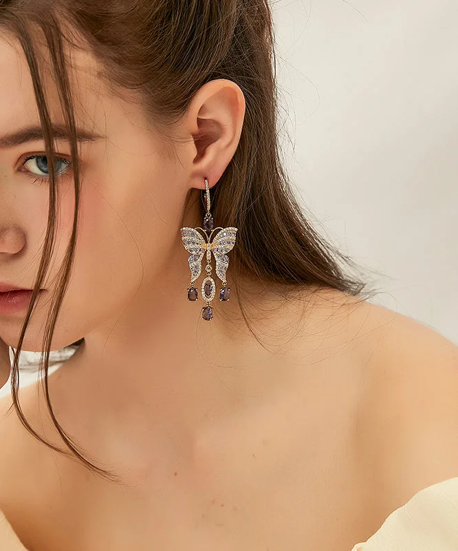 Beautiful Purple Copper Zircon Crystal Butterfly Tassel Drop Earrings