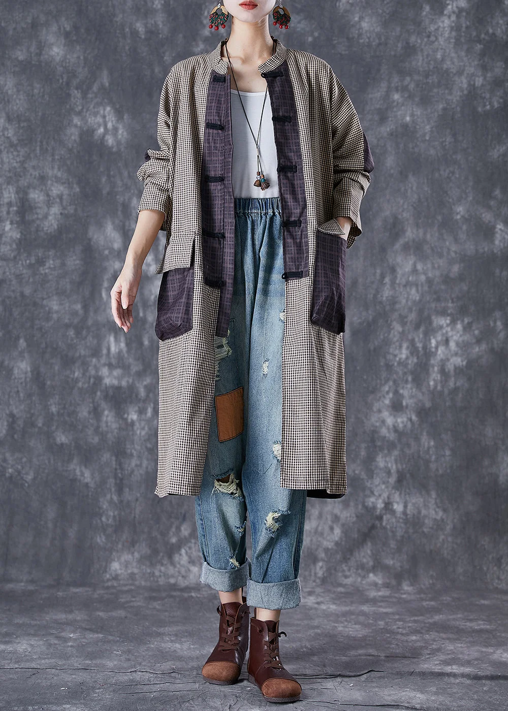 Casual Plaid Patchwork Pockets Cotton Long Blouses Fall Fabric: Cotton Blended Size & Fit: Fit: This garment fits true to size. Length: Size L measures 39.78"from shoulder to hem Bust: Great for any cup size. Waist: Loose Fit. Comfortable room throughout midsection. Hip: Loose Fit - room for hips. Hand Wash Cold.
