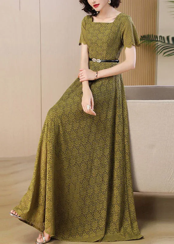 Novelty Ginger Square Collar Print High Waist Sashes Lace Maxi Dress Short Sleeve Fabric: Lace Size & Fit: Fit: This garment fits true to size. Length: Size S measures 48.36"from shoulder to hem Bust: Great for any cup size. Waist: Loose Fit. Comfortable room throughout midsection. Hip: Loose Fit - room for hips. Hand Wash Cold.