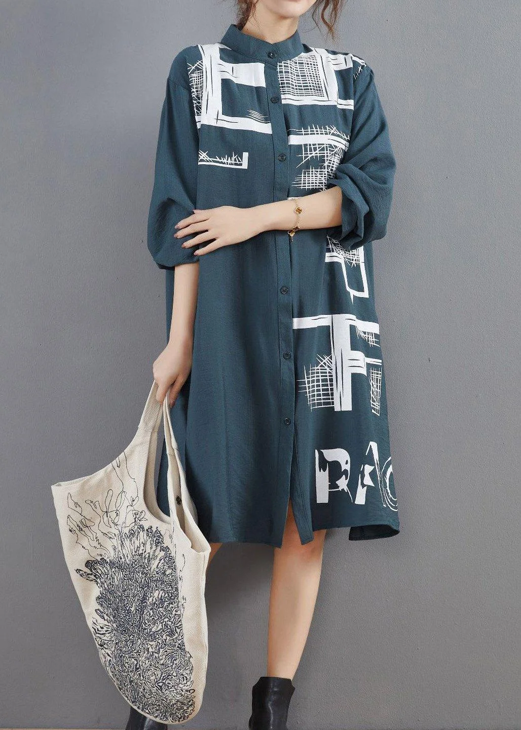 Vivid Blue Dresses Stand Collar Plus Size Spring Dresses Fabric: Cotton Size & Fit: Fit: This garment fits true to size. Length: Size 4XL measures 38.22"from shoulder to hem Bust: Great for any cup size. Waist: Loose Fit - comfortable room throughout midsection. Hip: Loose Fit - room for hips. Hand Wash Cold.